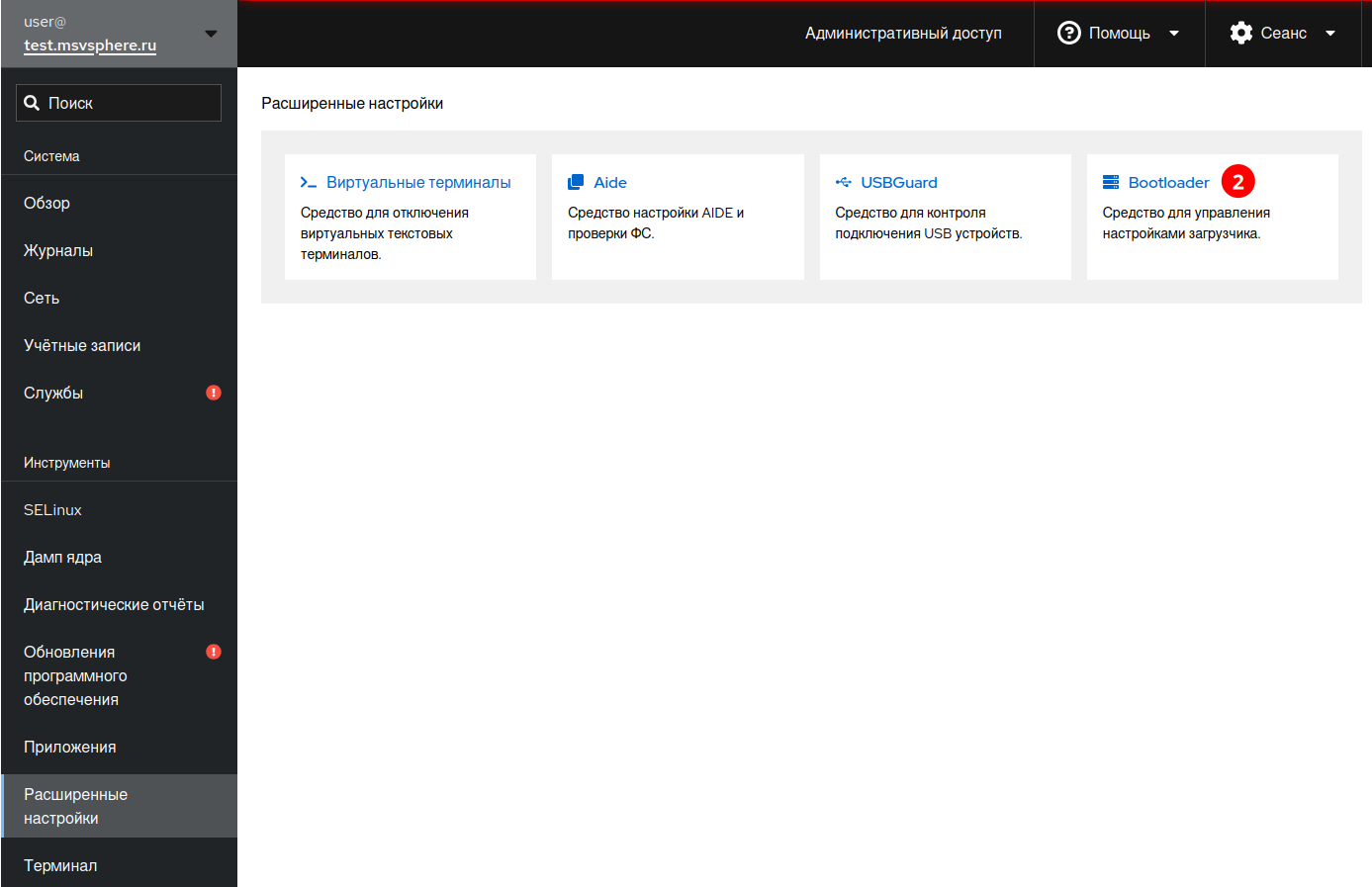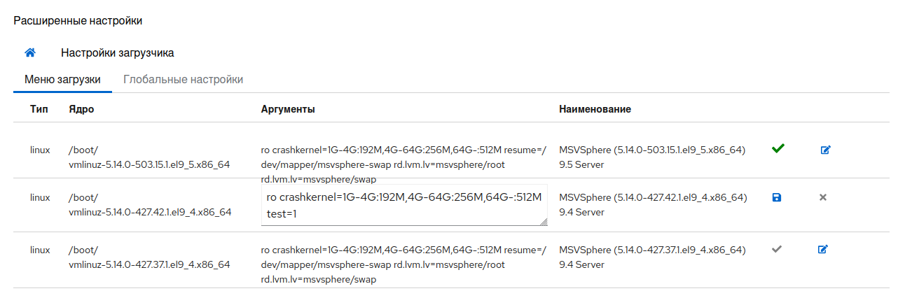 Расширение Bootloader для Cockpit предоставляет интерфейс настройки параметров загрузчика операционной системы.