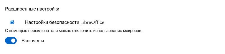 Расширение LibreOffice для Cockpit позволяет отключить использование макросов.