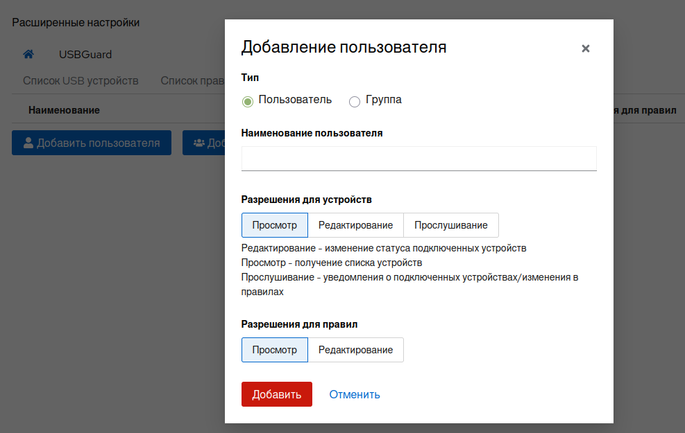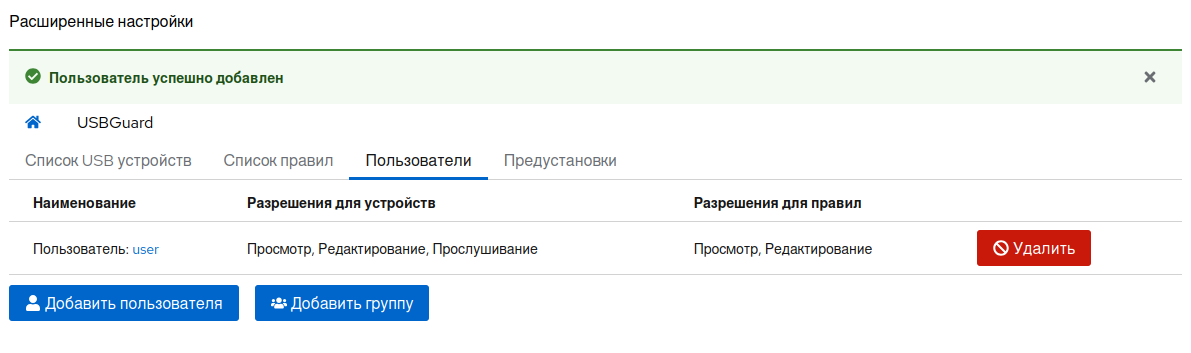 После добавления пользователя сервис usbguard будет перезапущен.