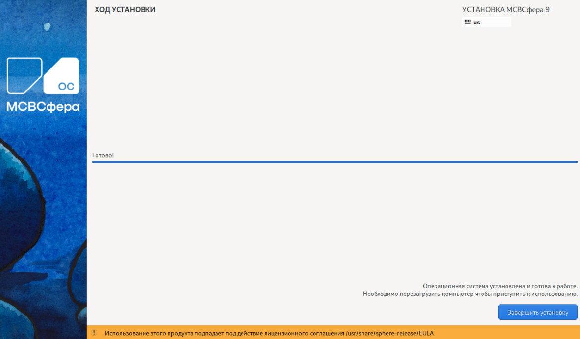 Вы успешно создали загрузочный USB-носитель ОС МСВСфера! Теперь можно приступать к установке системы (см. «Установка системы с USB-носителя»).