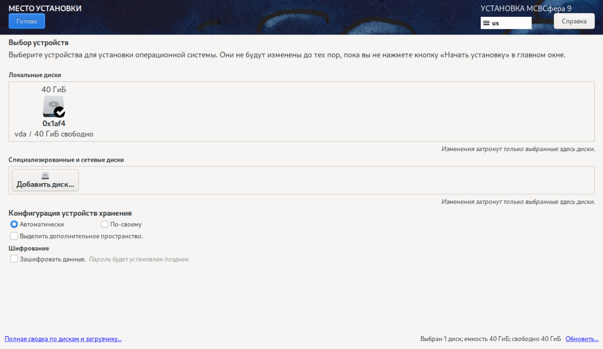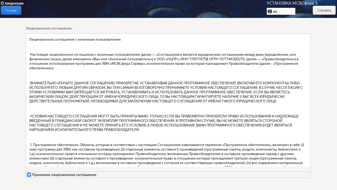 Для полноценной установки МСВСфера 9 выберите «Установить на жёсткий диск».