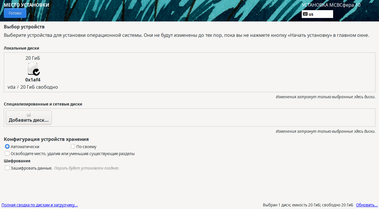 Для полноценной установки МСВСфера 10 выберите «Установить на жёсткий диск».