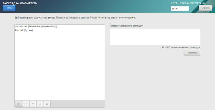 При нажатии на «Запустить МСВСфера 8 система будет запущена с установочного диска и готова для работы в режиме Live. В этом режиме вы можете ознакомиться с функциональными возможностями МСВСфера 8 без установки системы на жёсткий диск, а также проверить совместимость и корректную работу программного и аппаратного обеспечения.
