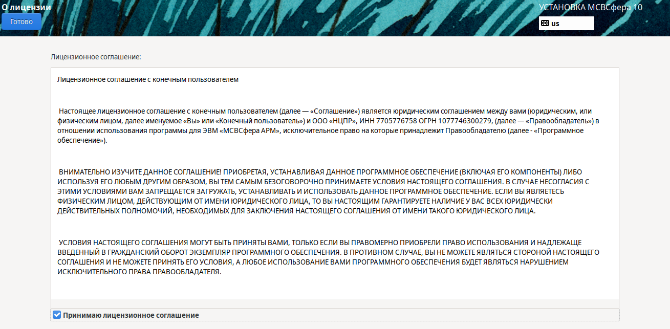 Перейдите в раздел «О лицензии», прочитайте и примите лицензионное соглашение.