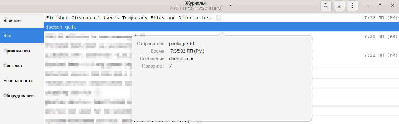 Просмотр системных журналов
