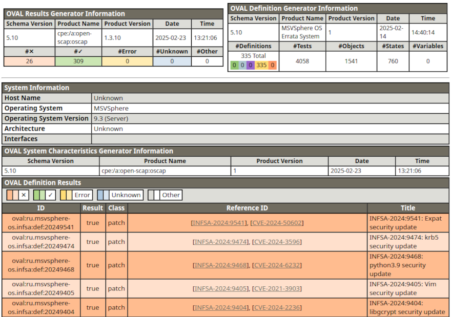 • msvsphere-9.en.oval.xml — путь к OVAL-файлу для тестируемой операционной системы.