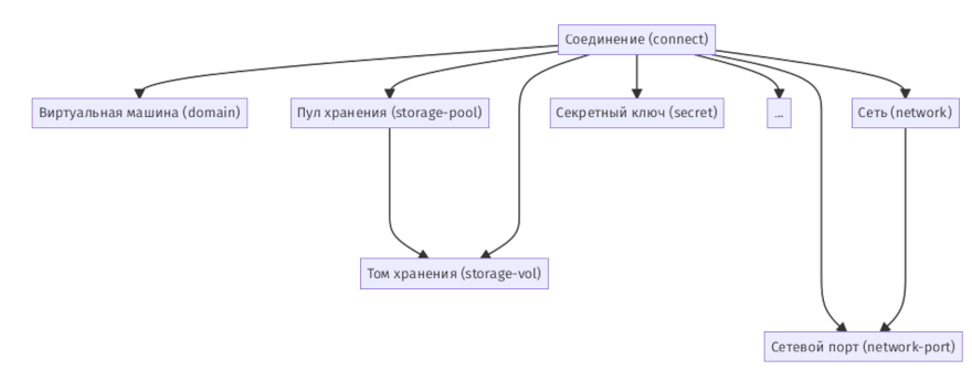 storage-pool(virStoragePoolPtr):connect_driver— название драйвера подключенияlibvirt.pool_name— название пула хранения, уникальное в пределах данного узла гипервизора.pool_uuid— уникальный идентификатор (UUID) пула хранения, уникальный для всего кластераlibvirt.