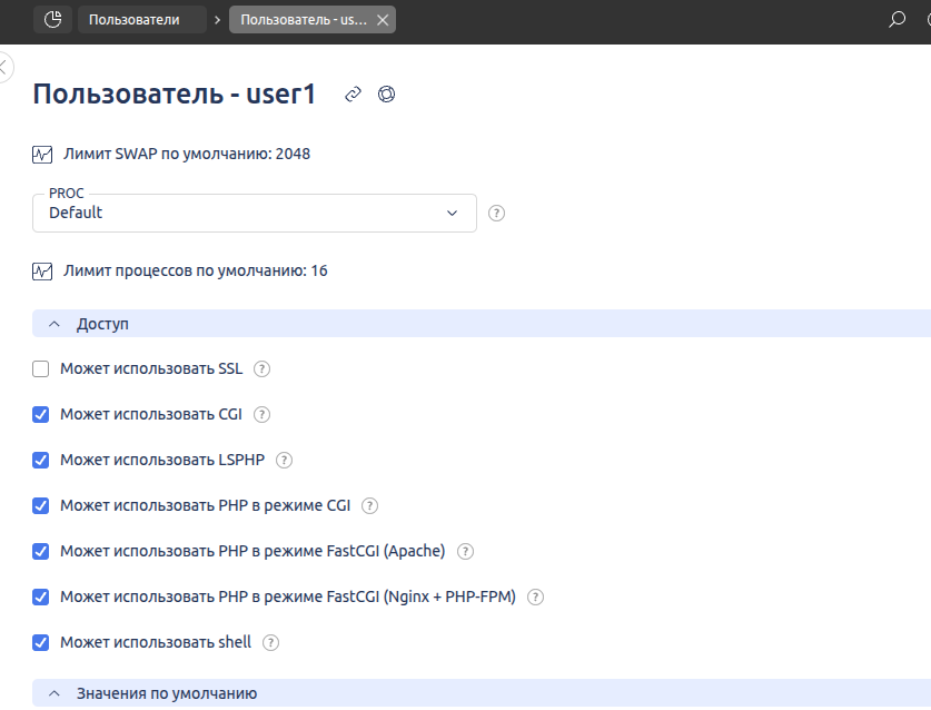 LSPHPперейдите к пользователю, для которого необходимо включитьmod_lsphp, и разрешите новый обработчикМожет использовать LSPHP.Сохраните изменения.