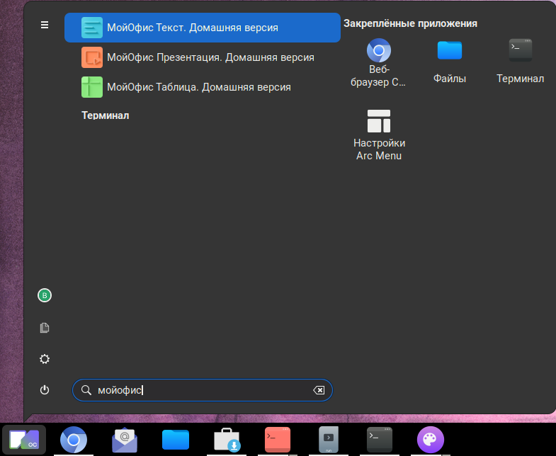 Чтобы запустить приложение Мой Офис, необходимо открыть Главное меню и набрать в поиске МойОфис: