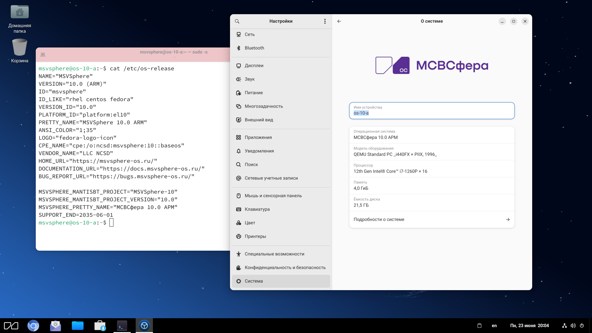 Некоторые старые процессоры несовместимы с МСВСфера 10.0 АРМ. Минимальные требования для установки следующие: