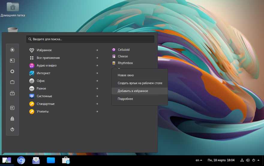 Или в меню «Приложения» навести курсор мыши на приложение и нажать правой клавишей мыши, затем выбрать «Добавить в избранное»/»Удалить из избранного».