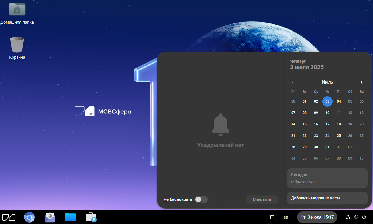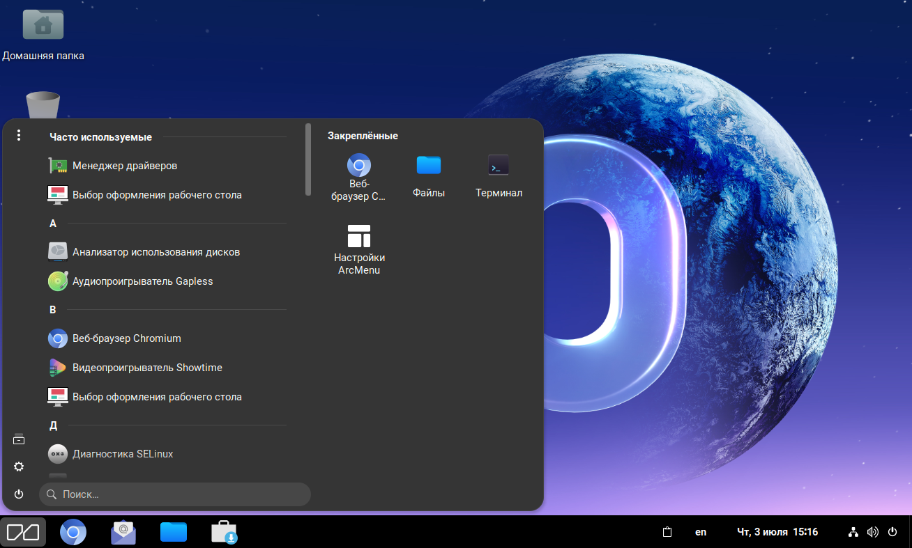 Меню «Приложения», предоставляющее возможность запуска интегрированных в систему приложений: