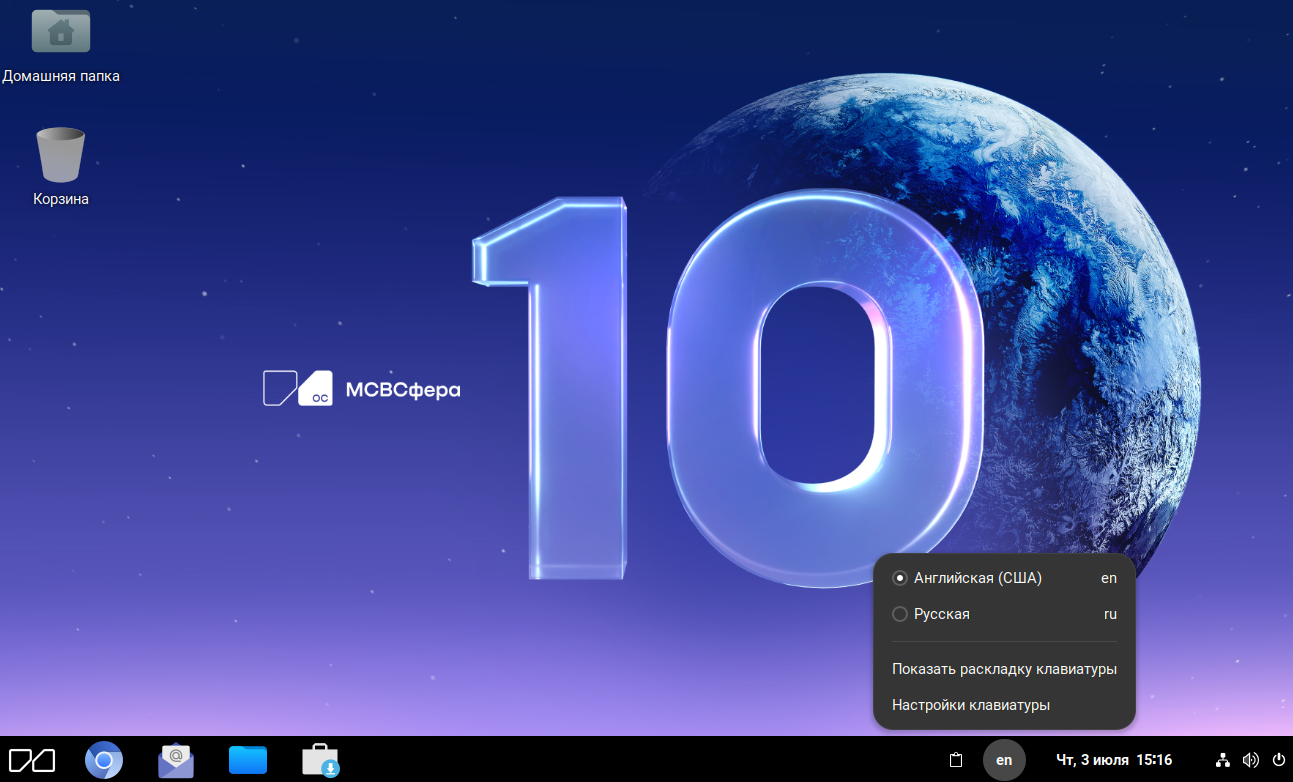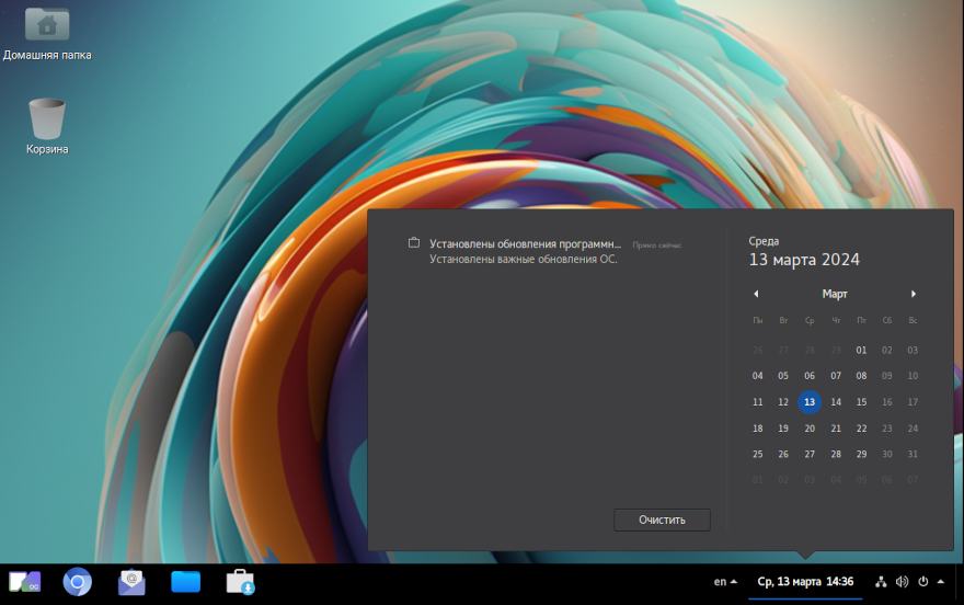 В случае ввода правильного значения пароля, вход пользователю будет разрешен и на экране появится изображение рабочего стола, включающего следующие элементы графического интерфейса.