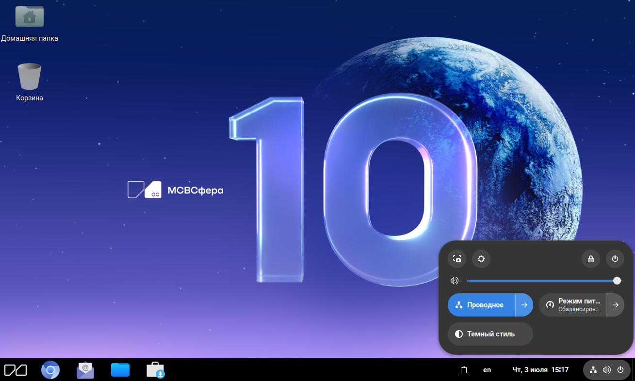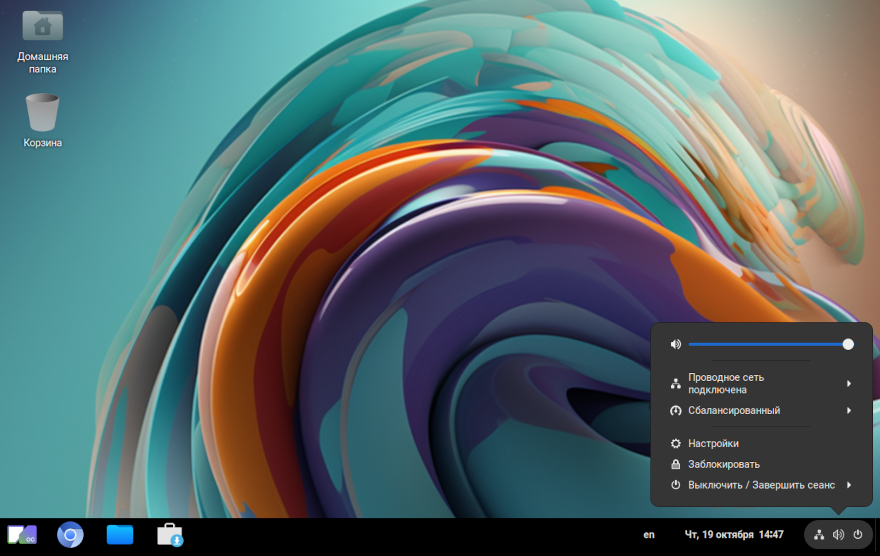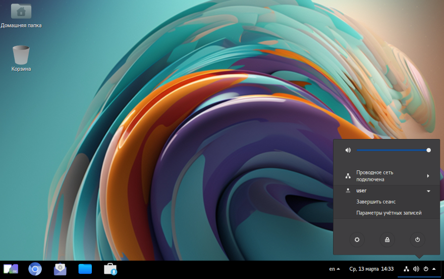 Системное меню, предоставляющее возможность настройки некоторых системных параметров, а также возможность завершения сеанса, блокировки экрана, перезапуска и выключения системы.