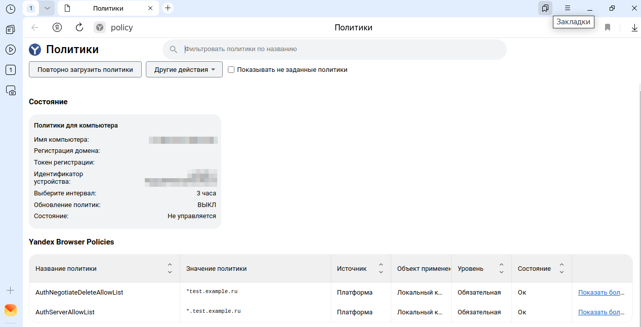 Теперь вы можете посмотреть созданные политики в браузере Яндекс по адресу